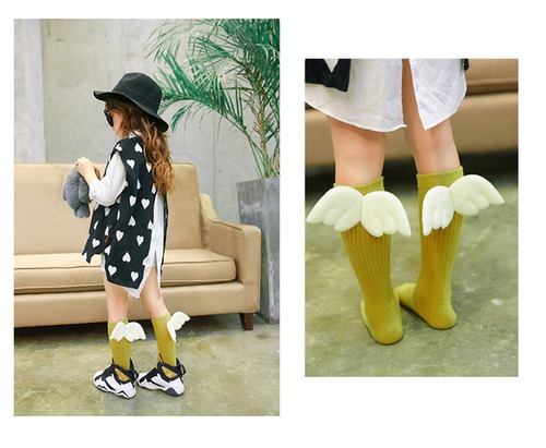 天使の羽付き♡キッズソックス♪靴下 子ども 女の子 ガールズ 赤ちゃん 黄色