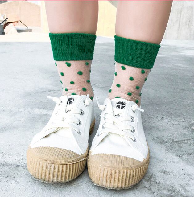 【再入荷なし!在庫限り!!】インポート♪シースルードットキッズソックス♡緑 靴下 シアーソックス 男女兼用 水玉
