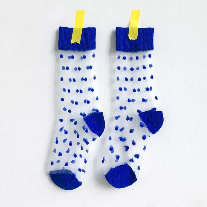【再入荷なし!在庫限り!!】インポート♪シースルードットキッズソックス♡青 靴下 シアーソックス 男女兼用 水玉