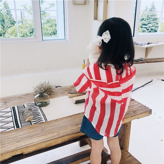使いやすい!薄手♪ストライプシャツパーカー♪黄色 赤 ジャケット 男女兼用 ユニセックス