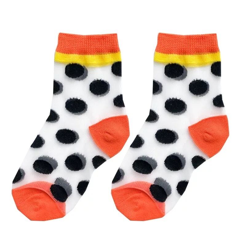 【再入荷なし!在庫限り!!】派手カワ♡シースルービッグドットキッズソックス♡ブラックドット 靴下 男女兼用