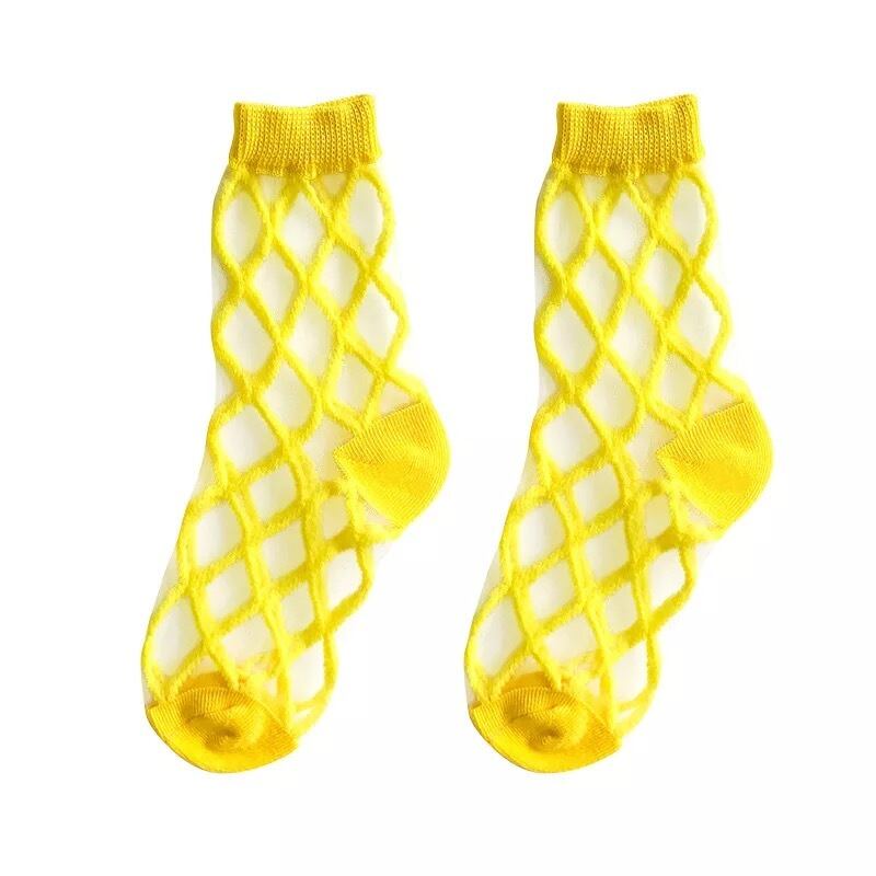 【大人気!!】インポート!シースルーチェックキッズソックス♡イエロー 靴下 男女兼用 夏