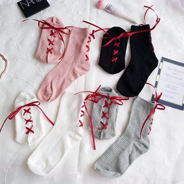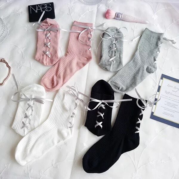 【ママ用】インポート♪オシャレ!後ろ編み上げソックス♡靴下 カジュアル ガーリー リボン
