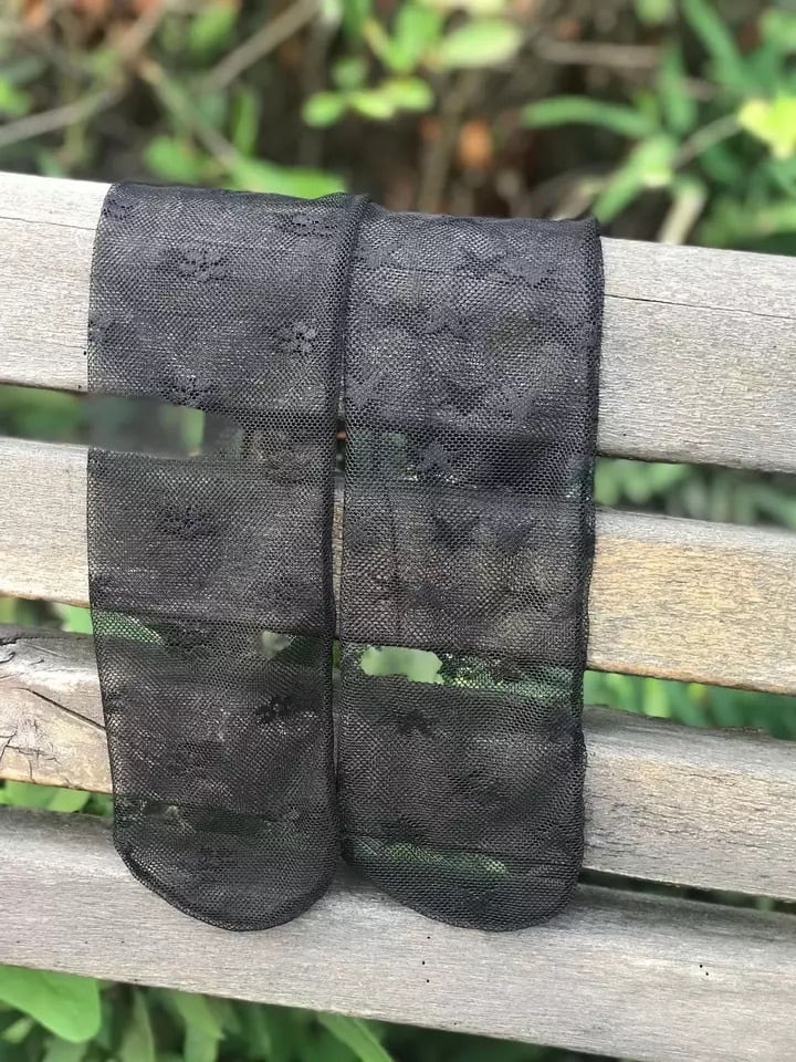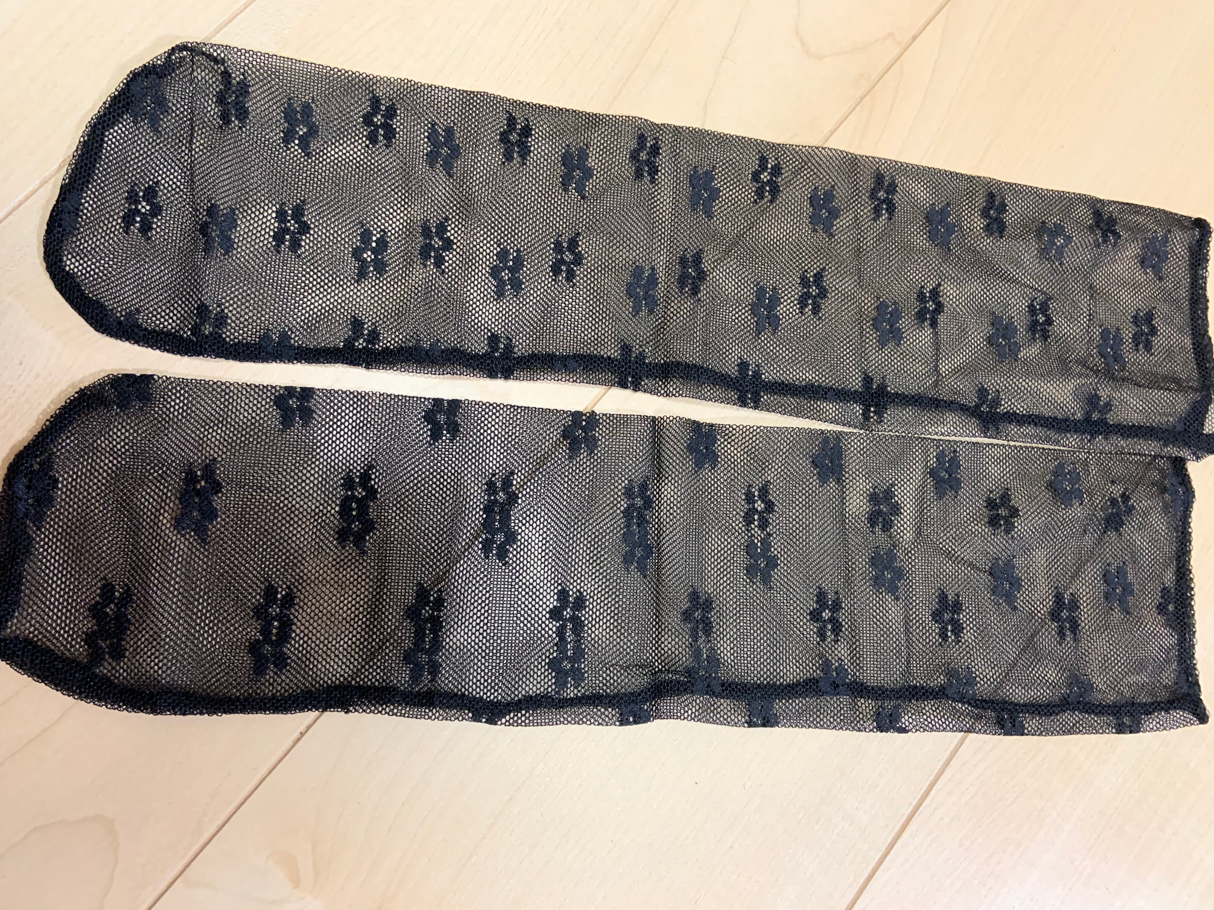 オシャレ♪キッズシースルーソックス♪黒 花柄 星柄 靴下 子ども用 女の子 ガールズ