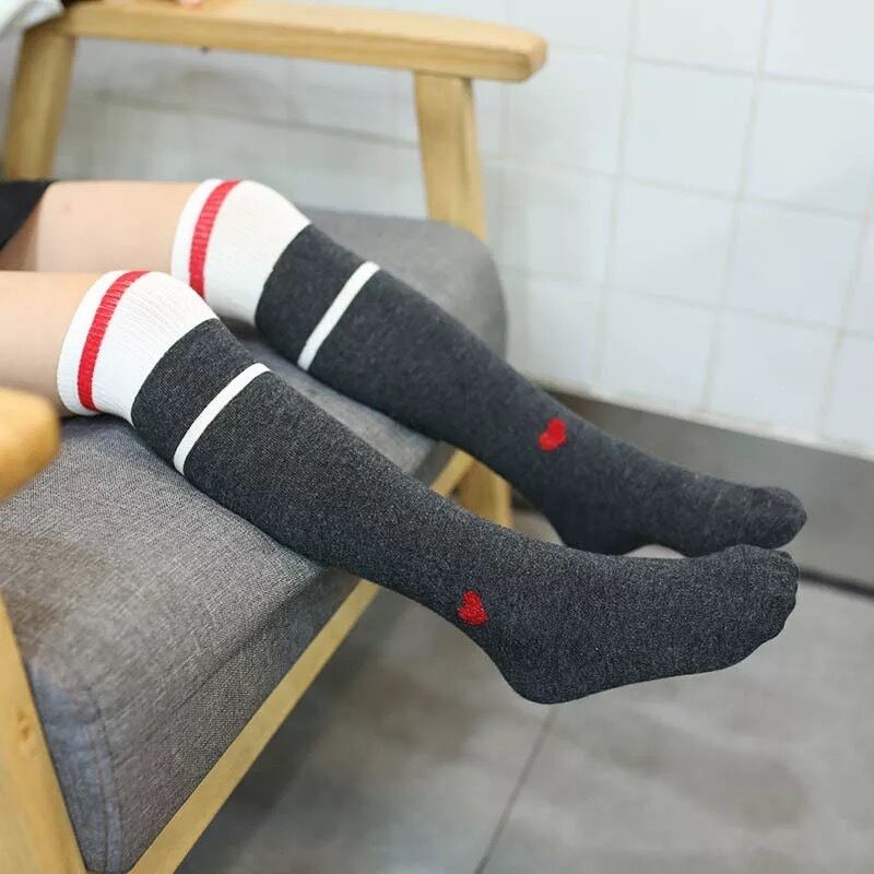 可愛い♡ハート付きニーハイソックス♪グレー 黒 靴下 膝上ソックス 女の子 子ども用