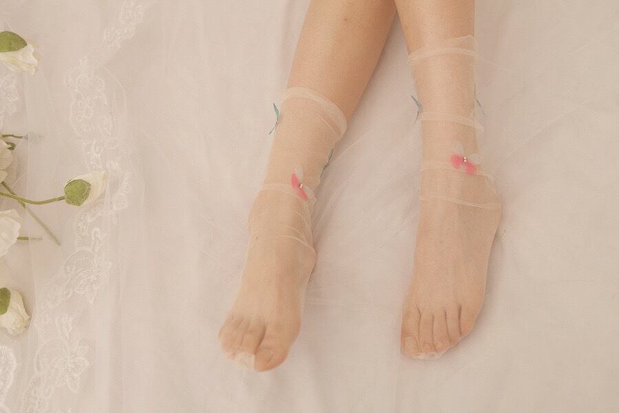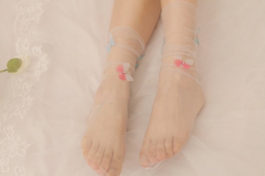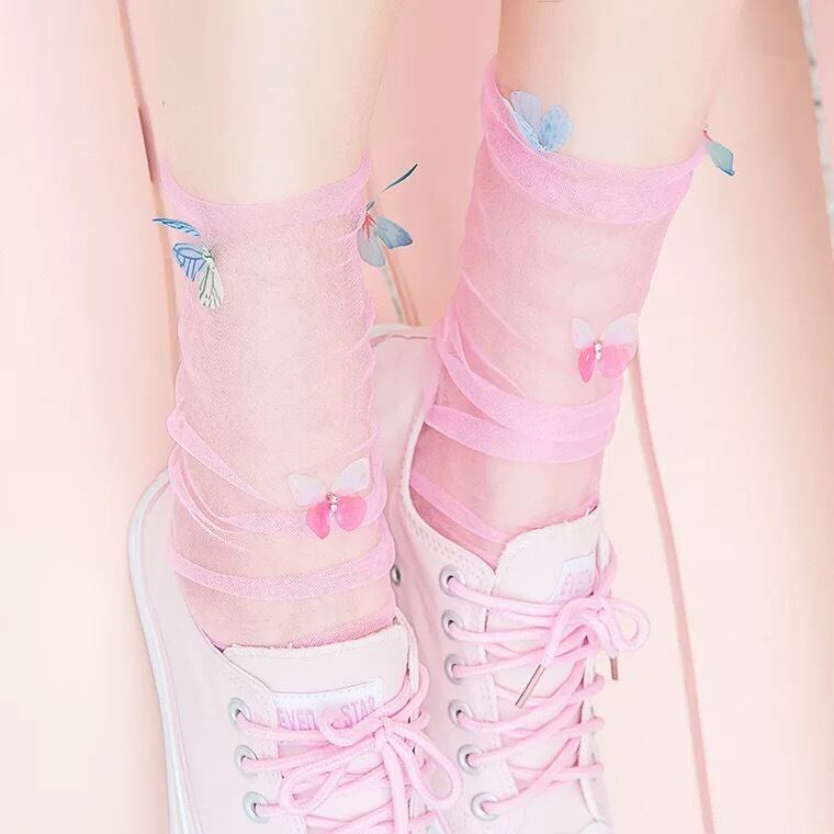 立体的な蝶々が付いたデザインのシースルーソックスです!