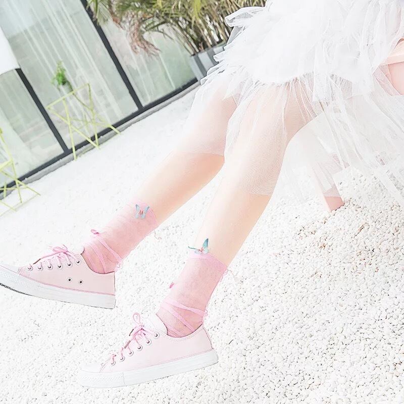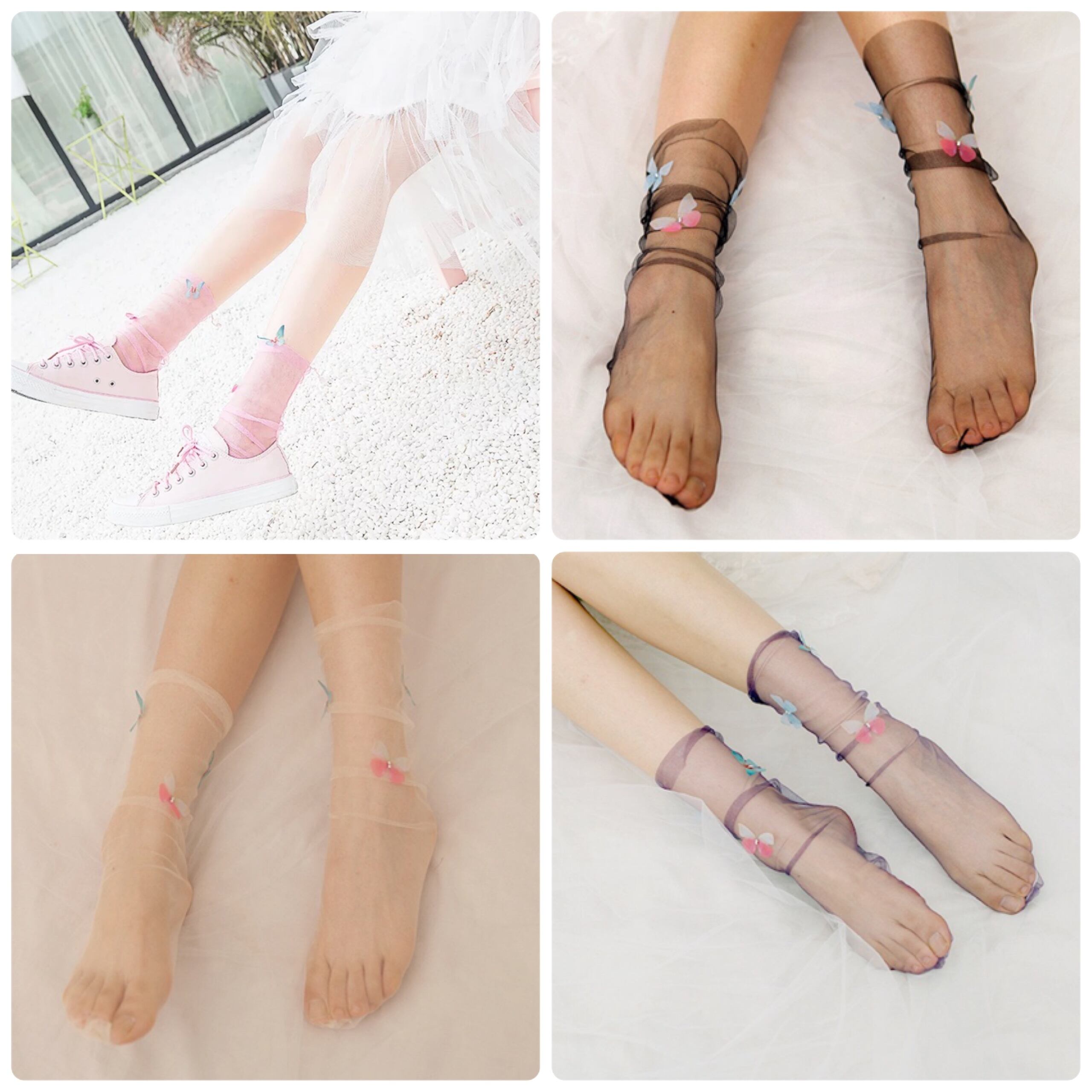 【ママ用】インポート♪3D蝶々付きシースルーソックス♪靴下 ストッキング 透け チョウチョ
